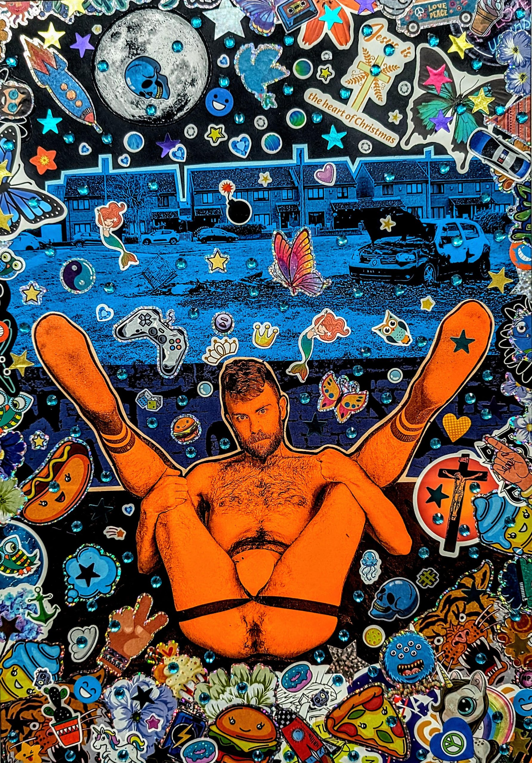 Estate Lad (Johnny) – £250.00 Size: A3 sized in an A2 sized mount and frame Materials: Handmade mixed media collage on card