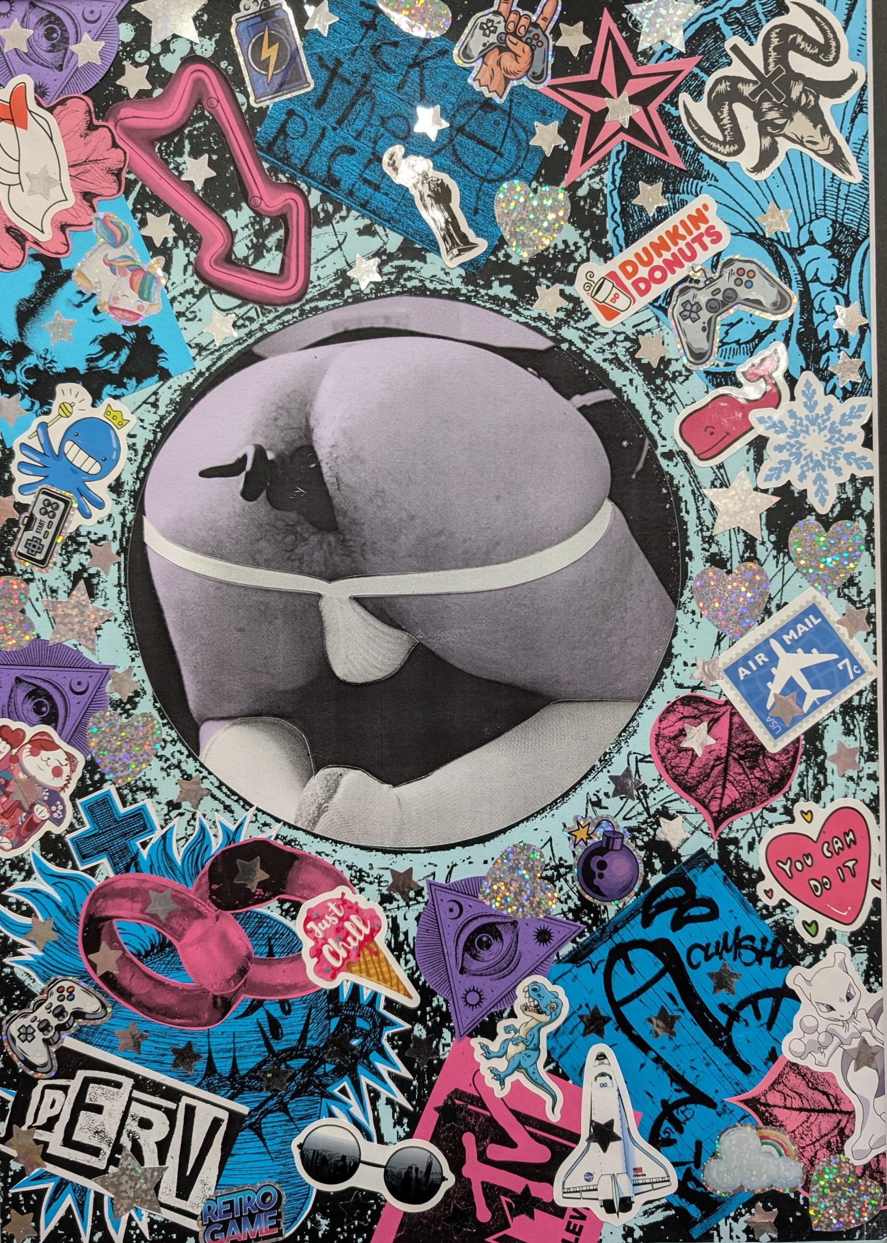 PEEP HOLE (1) – £250.00 Size: A3 sized in an A2 sized mount and frame Materials: Handmade mixed media collage on card