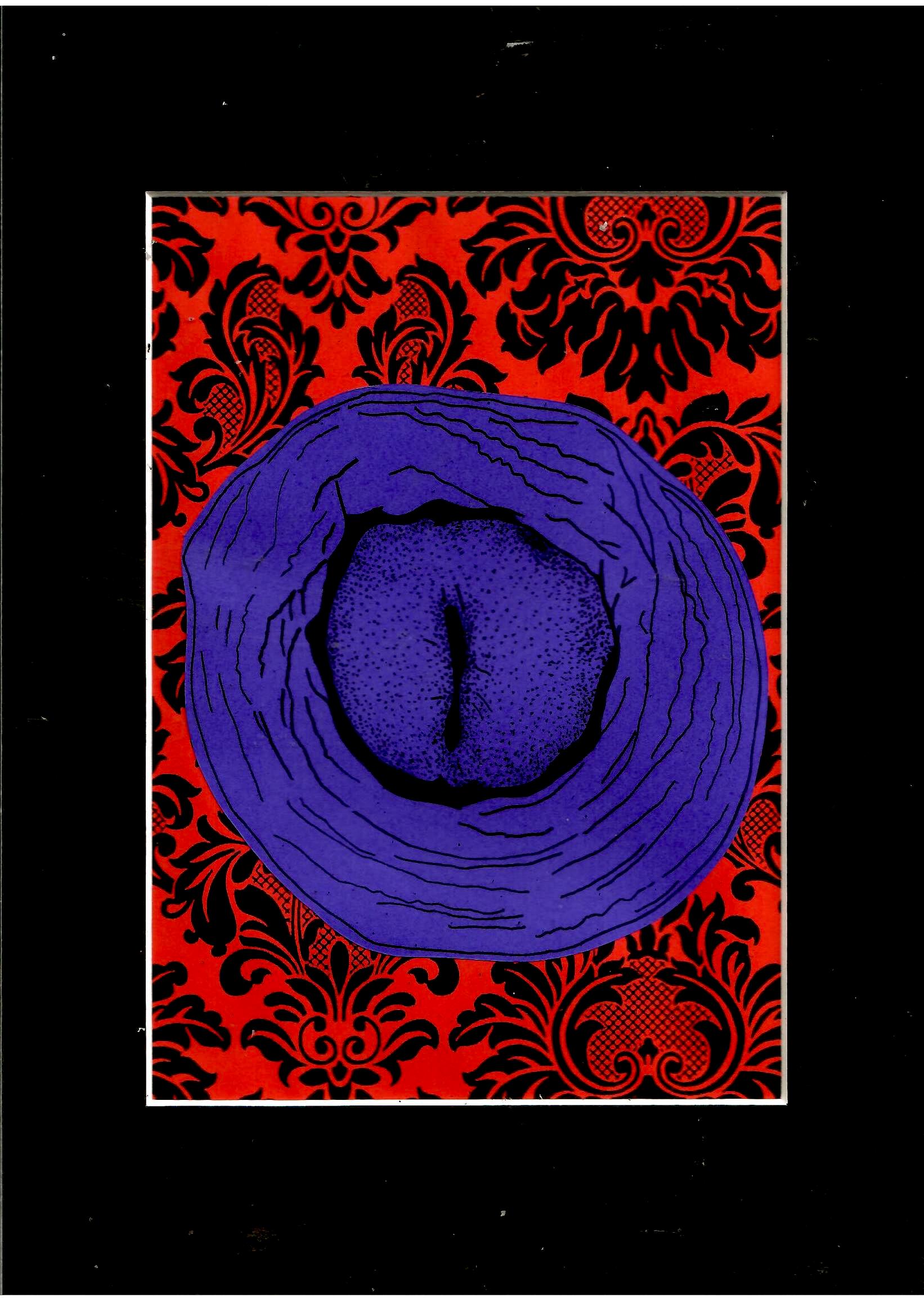 Handmade colour paper collage – Foreskin against flock wallpaper